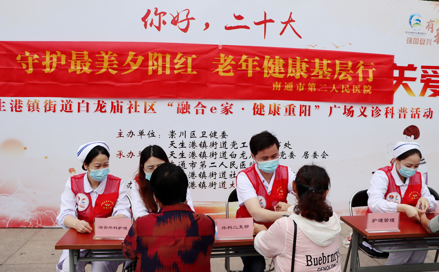 9月21日,我院医护志愿者到天生港街道白龙庙社区新华佳园开展义诊及科普宣教活动,增强居民的健康保护意识。ag真人