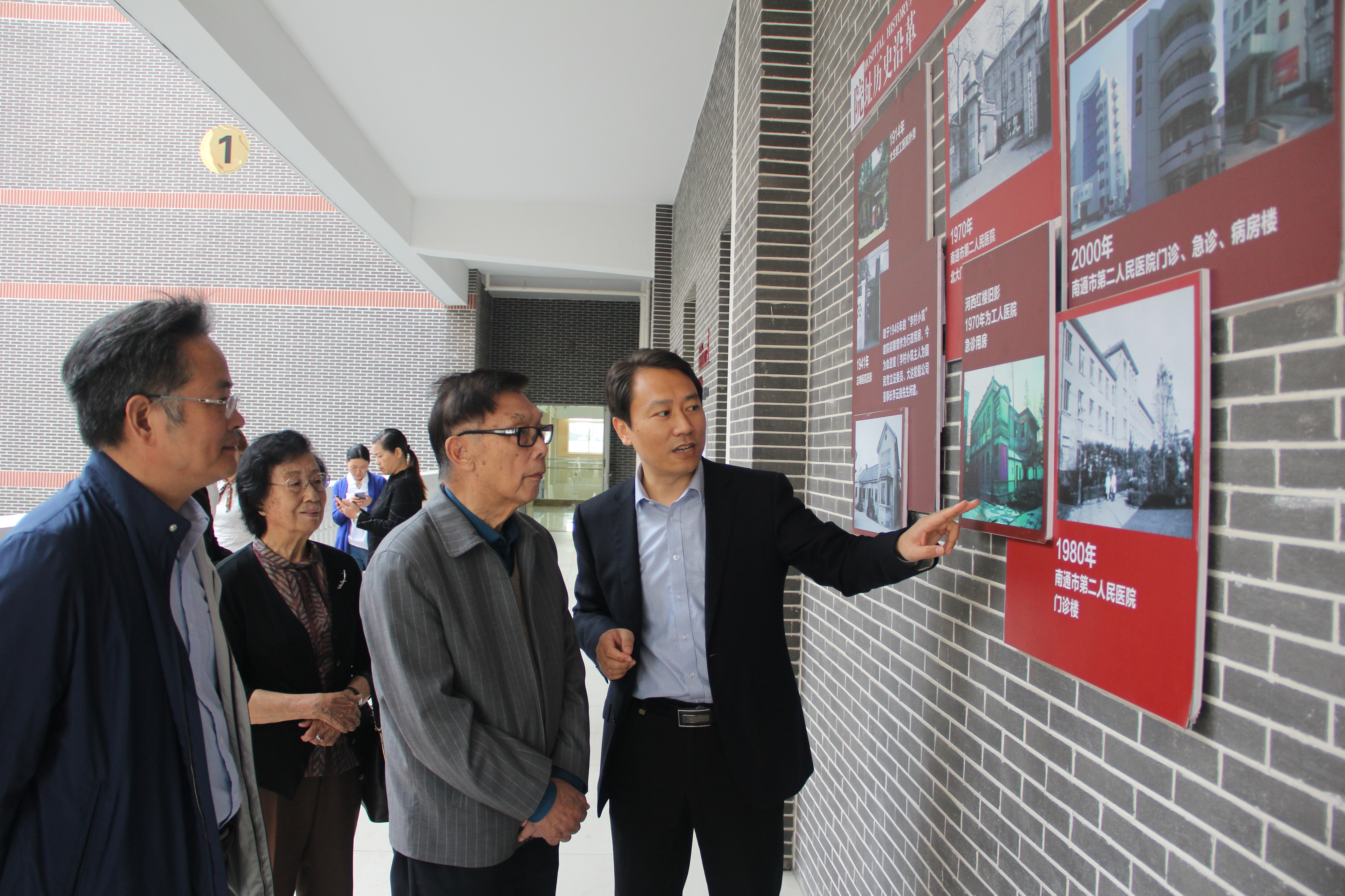 杨建斌院长介绍了我院新门急诊病房综合楼的基本情况。他说,自9月份新大楼投入使用以来,我院就诊环境得到了质的飞跃,宽敞明亮的诊疗环境、一站式就医服务,处处体现了“一切以病人为中心”的人性化设计理念。党委书记任建兵向张老介绍了门诊大厅的一百多平方米的汉白玉浮雕墙,整体设计形式新颖,内容丰富,人物部分则以张謇先生等人物形象呈现,彰显了我院“百年传承 医心永恒”的文化主题,让人们在感受ag真人文化的同时,感受到艺术带给人们的视觉享受。