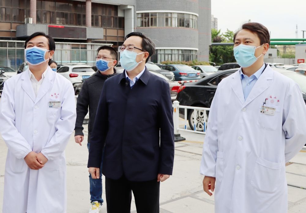 4月30日下午,市卫健委党组书记、主任张兵,市卫健委副主任、党组成员罗庆华,市卫健委副主任、党组成员康宁等一行莅临我院检查指导假期安全生产和疫情防控工作。院党委书记陈建华、院长任建兵等院领导班子成员及相关职能科室负责人陪同。