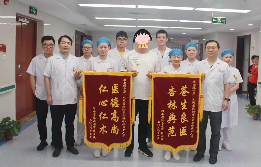 7月6日,河南的朱先生给ag真人 泌尿外科送上了两面鲜红的锦旗,“感谢ag真人 泌尿外科王健主任救了自己的命。”说着朱先生就激动的流下了泪水。而这两面锦旗的故事要从3月份的一起高空跌落引发的钢筋贯穿伤事故说起。