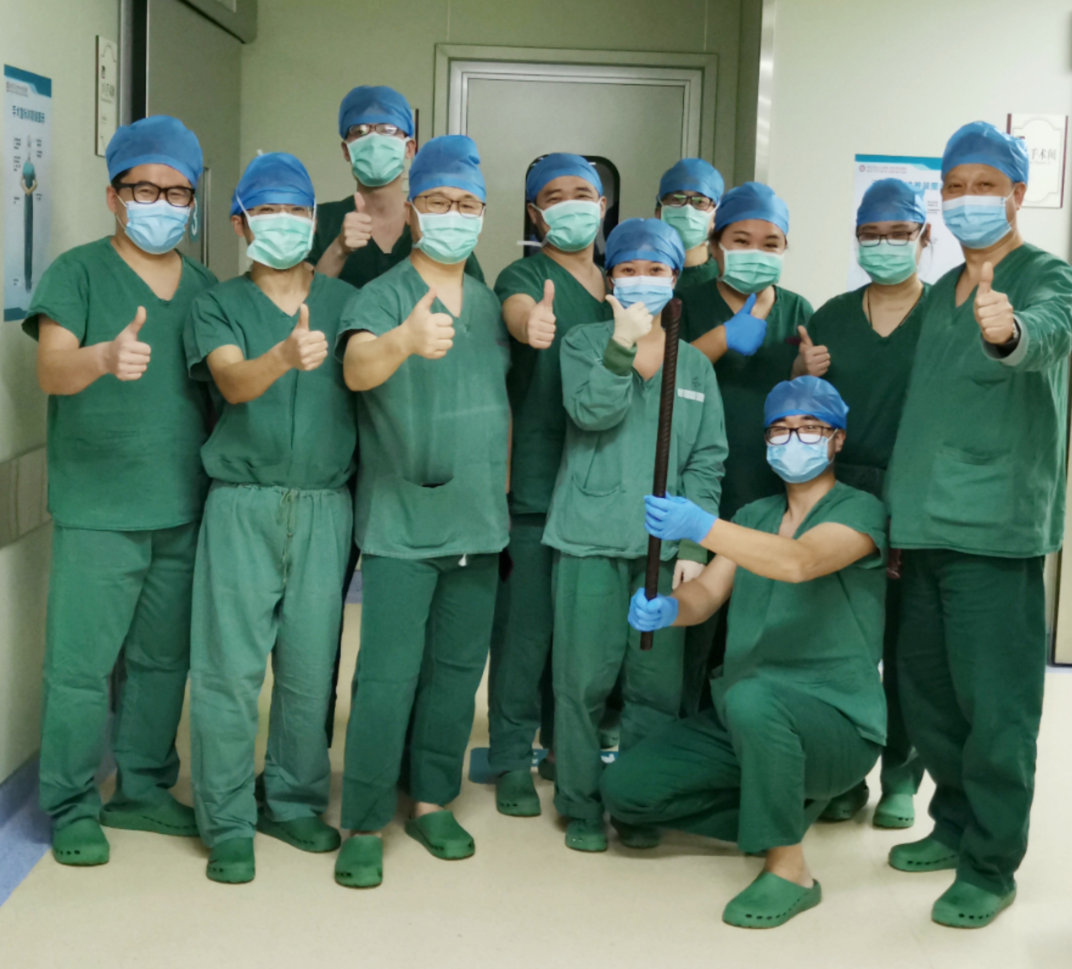完成了抢救手术的王健第一时间在ag真人工作群中给大家报平安。据悉,像朱先生这种刺入钢筋的长度和粗度,在国内抢救案例中实属罕见。朱先生的抢救成功充分体现了ag真人 泌尿外科抢救重大应急外伤处置能力达到了国内领先水平。