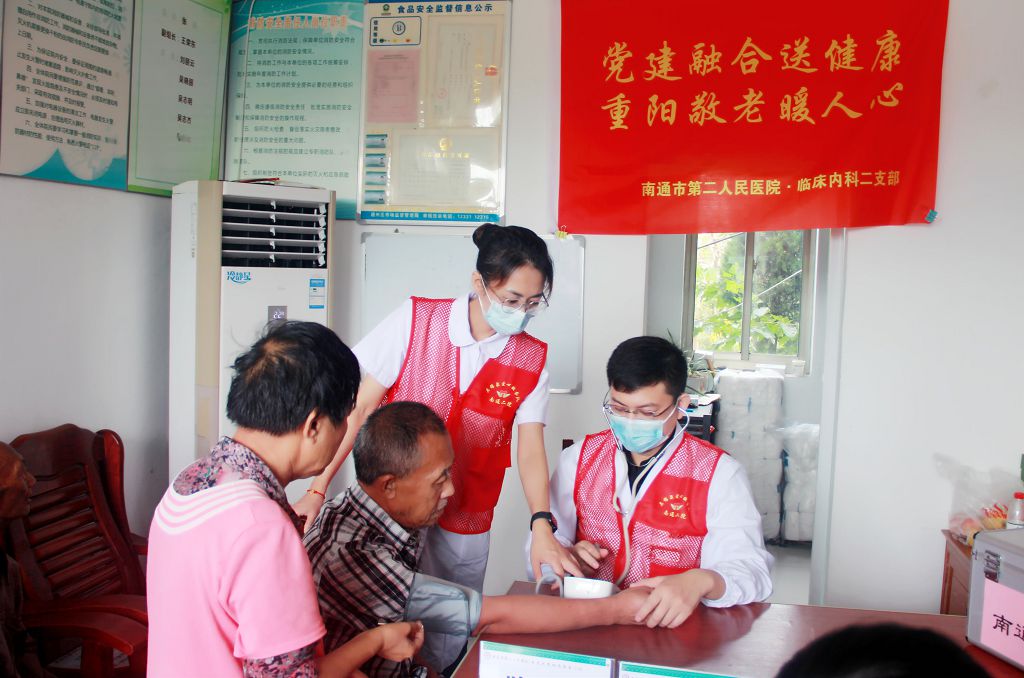 金秋送爽,丹桂飘香,为弘扬中华民族敬老爱老的传统美德,在重阳节来临之际,ag真人 (南通大学附属康复ag真人)各党支部、护理部、团委的党员志愿者和医护志愿者们分别前往敬老院、居民社区、护理院等地开展“党建融合送健康 重阳敬老暖人心”义诊活动。